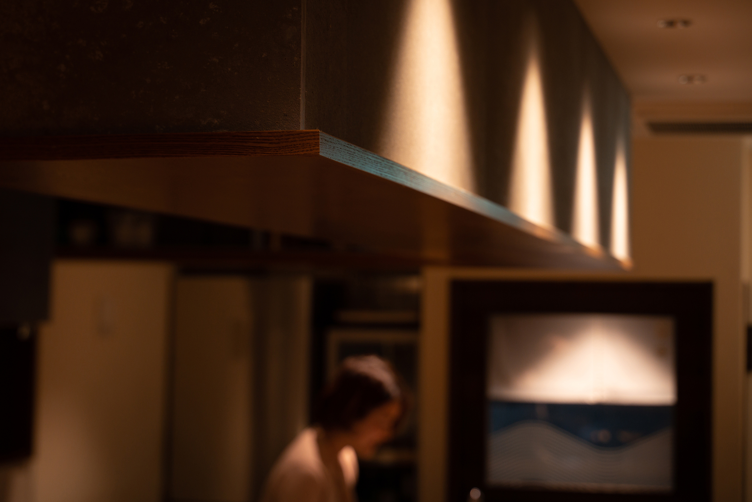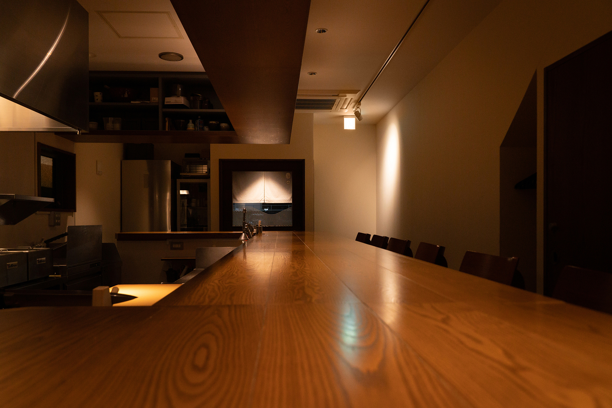 「お客様に時間を気にせずゆっくり過ごしていただきたい」という店主の想いが形になるよう、色味や素材、サイズや明るさなど、打ち合わせを重ね丁寧にデザインしました。