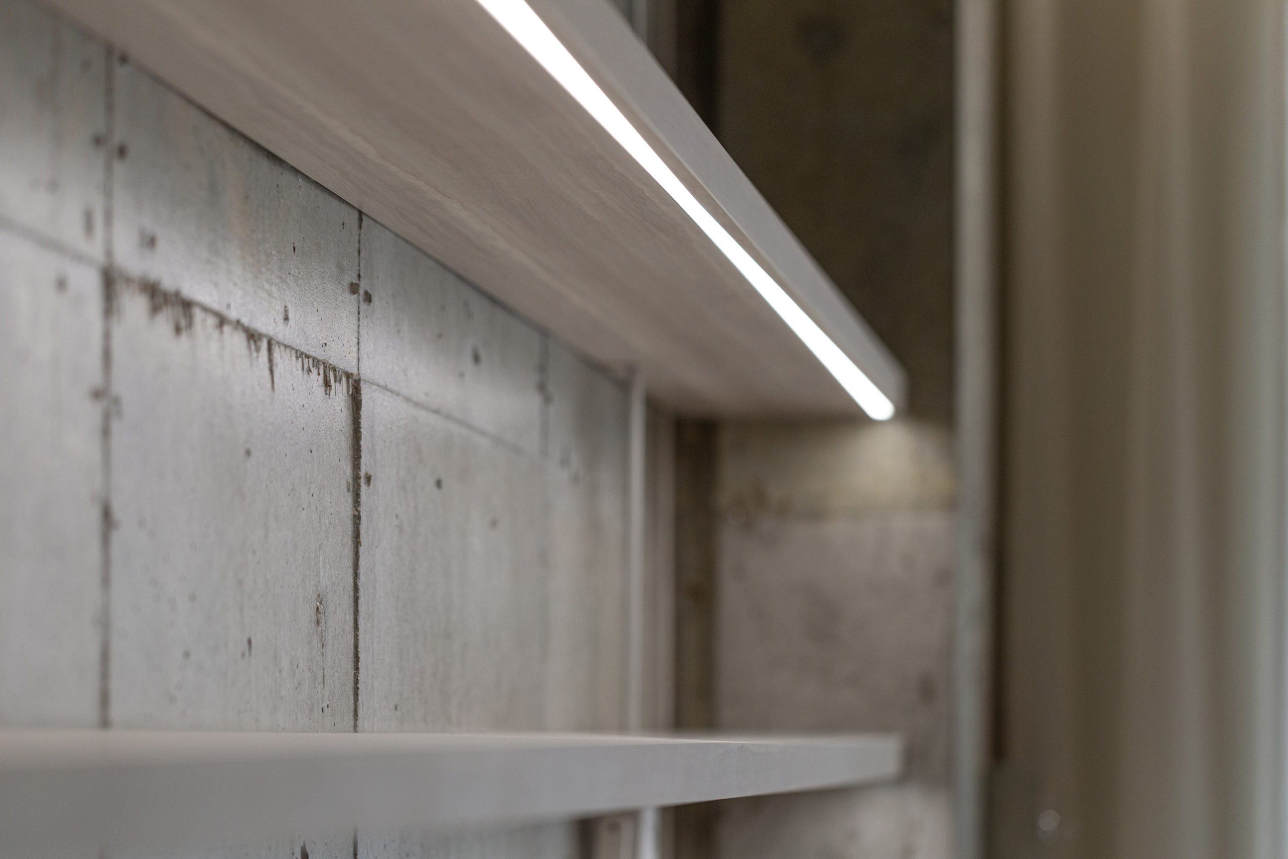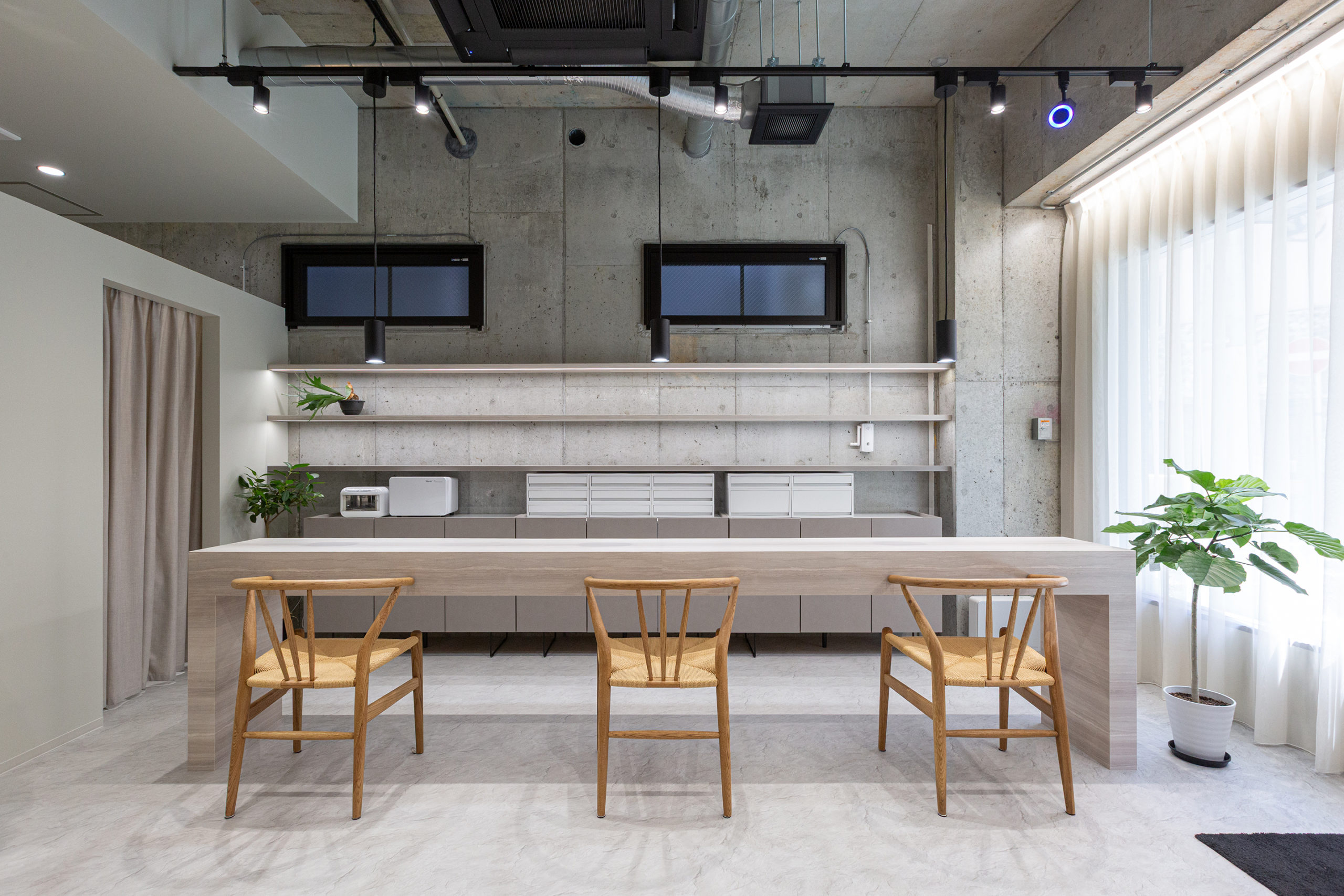 空間全体は、アイボリーやグレーといった穏やかなトーンでまとめ、統一感と上質さを感じさせるカラー設計に。