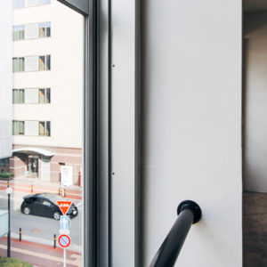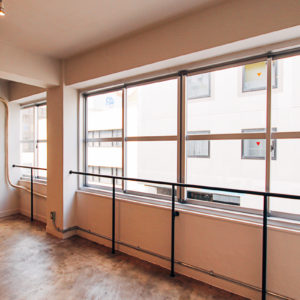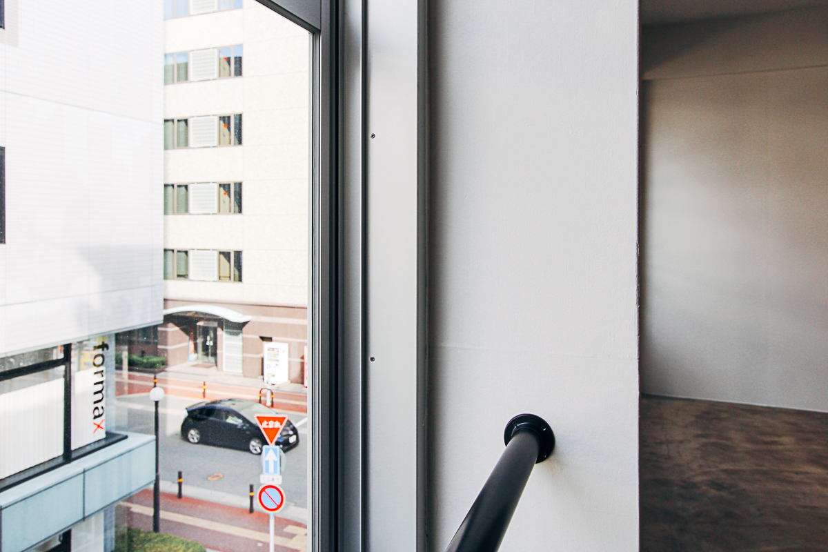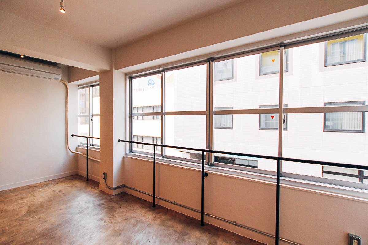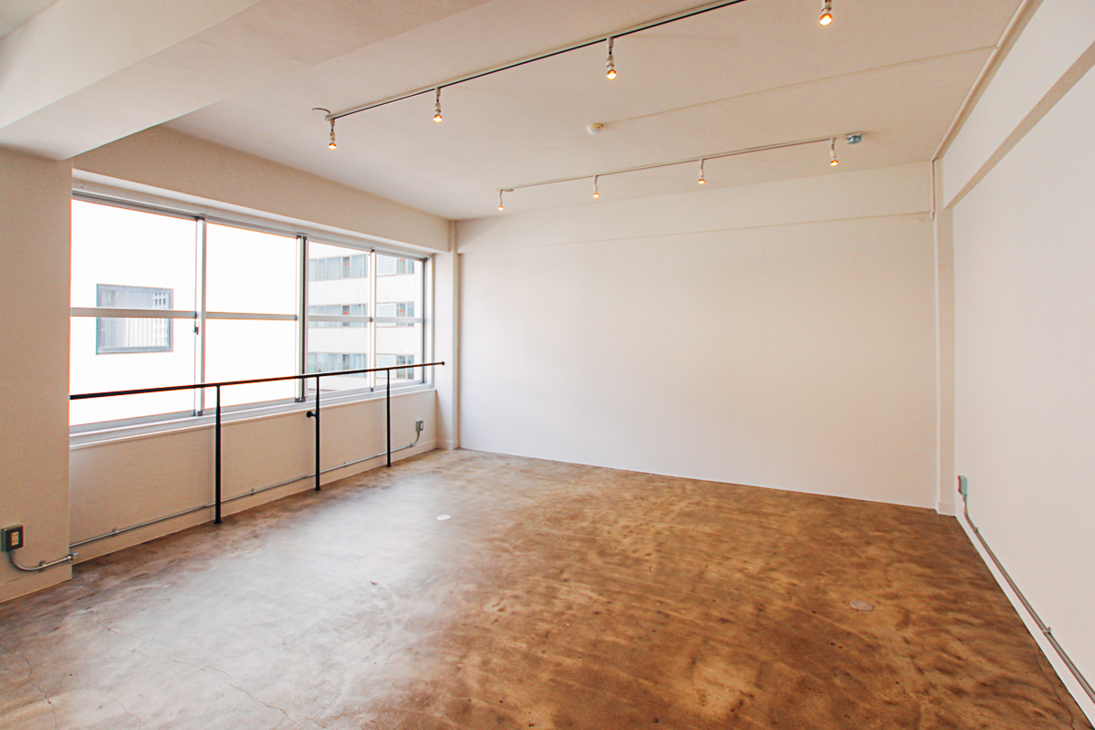 天神北にある1962年竣工(築56年)のレトロビル。グレーとホワイトでシンプルにまとめた空間に加え、床面の土間は、多様なスタジオ利用にも向いています。古い建物の魅力を引き出しつつ、オーナーさんや入居者の個性と建物の特徴、周辺のエリアの印象を整理して再定義するリノベーションを目指しました。
