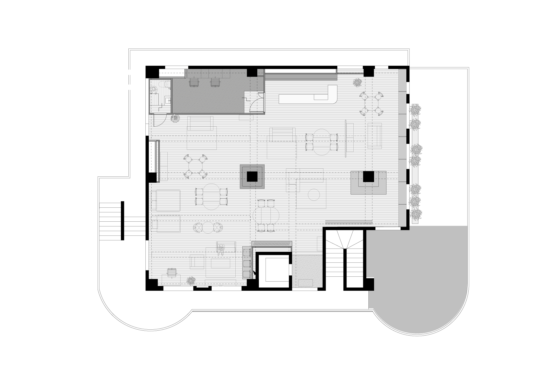 福岡・青山とは異なり、吉祥寺店では建物そのもののクラシカルな佇まいを活かしながら、外部空間とのつながりを重視。